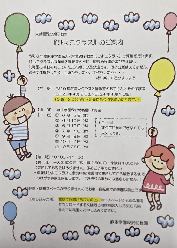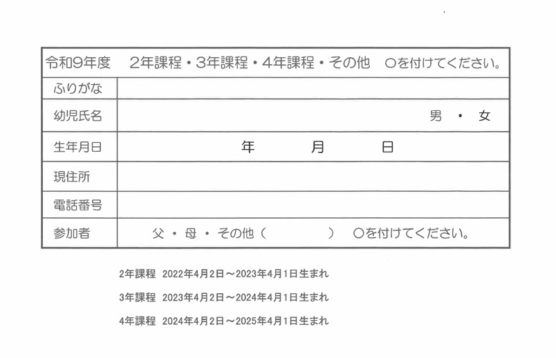 参加を希望する方は下の申込書に記入の上、幼稚園に提出してください。(4月13日(月)より申込みを受付ます。)お待ちしています!