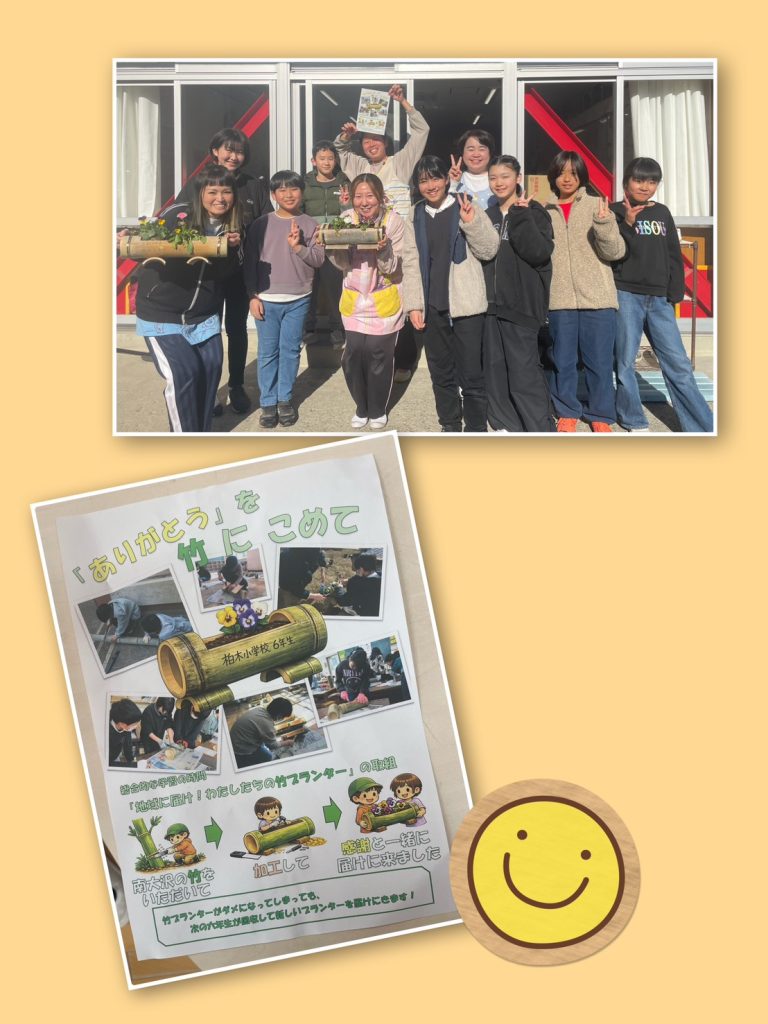 柏木小学校の6年生がお世話になった人に竹でできたプランターをプレゼントする企画で、卒園児の子がなんと南多摩幼稚園を選んでくれました(*^▽^*)
