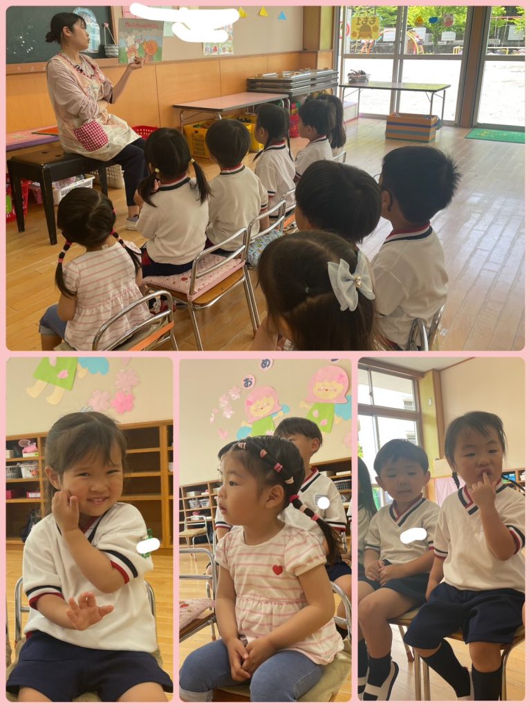 始まるまで紙芝居を見ています♪