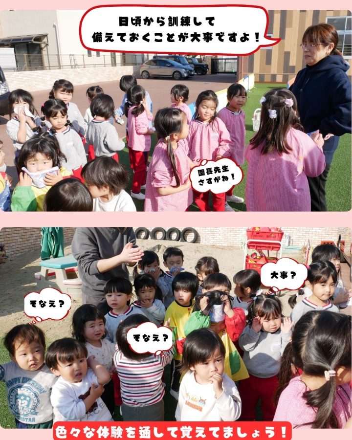 最後に園長先生から、「日頃から訓練して備えておくことが大事ですよ」とのお話。