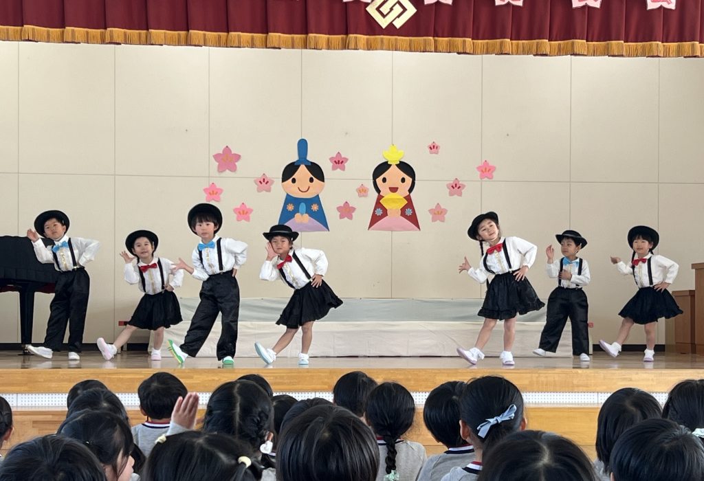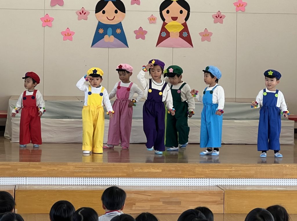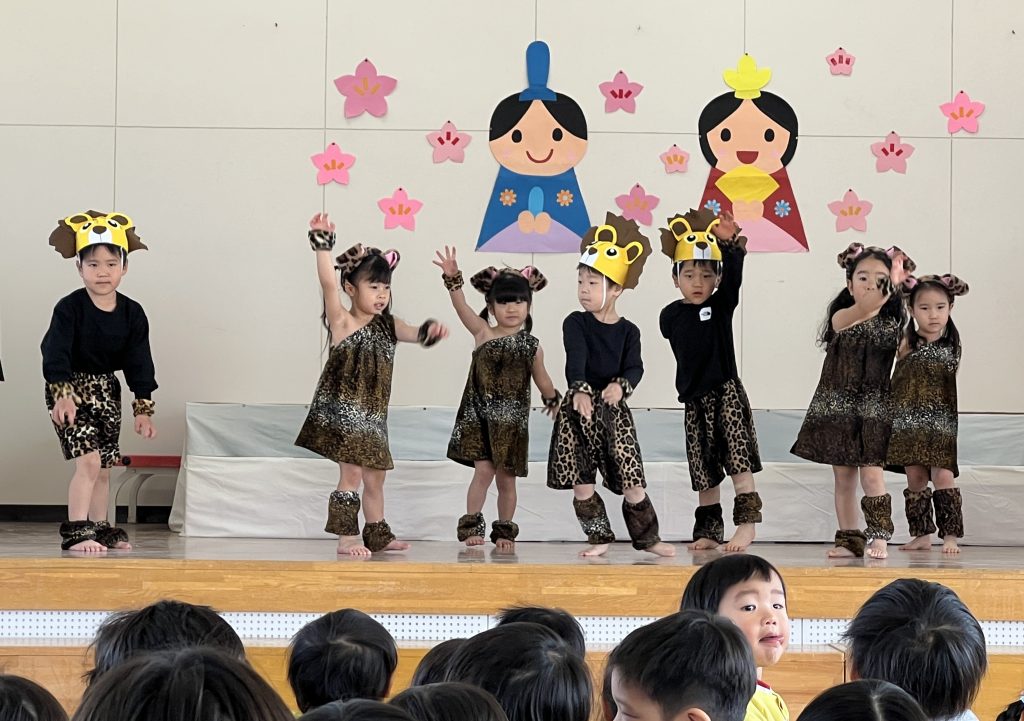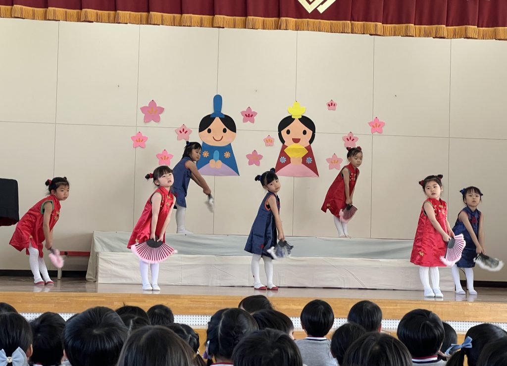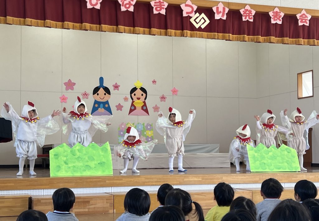 19日(木)に1部、20日(金)に2部のこどもひなまつり会を行いました。みんな発表会の衣装を着て嬉しそうでした。音楽が流れると、本番さながら楽しそうに踊っていましたよ。