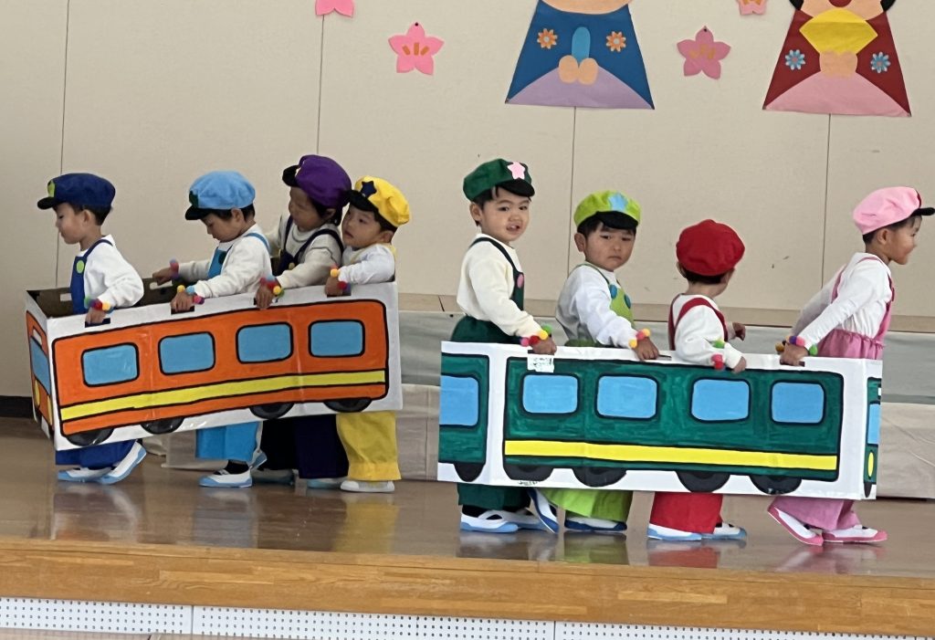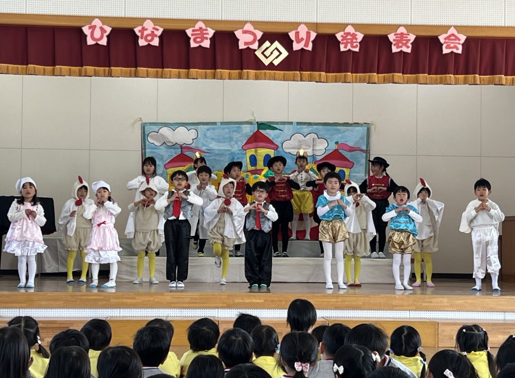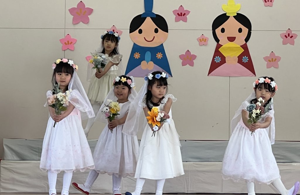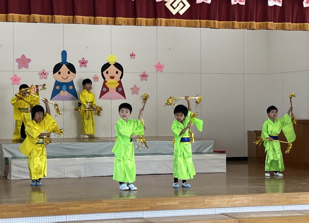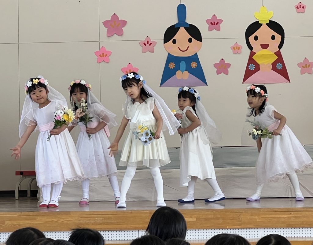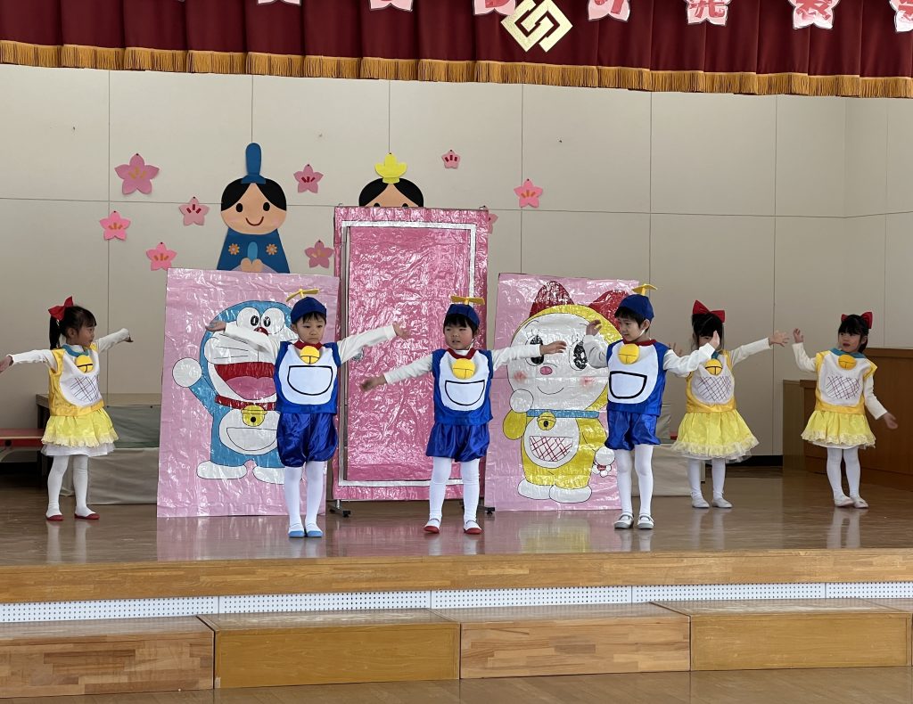 19日(木)に1部、20日(金)に2部のこどもひなまつり会を行いました。みんな発表会の衣装を着て嬉しそうでした。音楽が流れると、本番さながら楽しそうに踊っていましたよ。