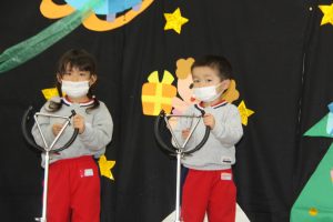 2022年12月09日 / 最終更新日時 : 2022年12月09日 アスター幼稚園 園の様子 あわてんぼうのサンタクロース(こすもす2) 12月21日の歌・合奏発表会に向けて、どのクラスも練習が始まっています。こすもす2組の合奏曲は「あわてんぼうのサンタクロース」です。「あわてんぼうのサンタクロース」の歌を口ずさみながら写真を見てくださいね。