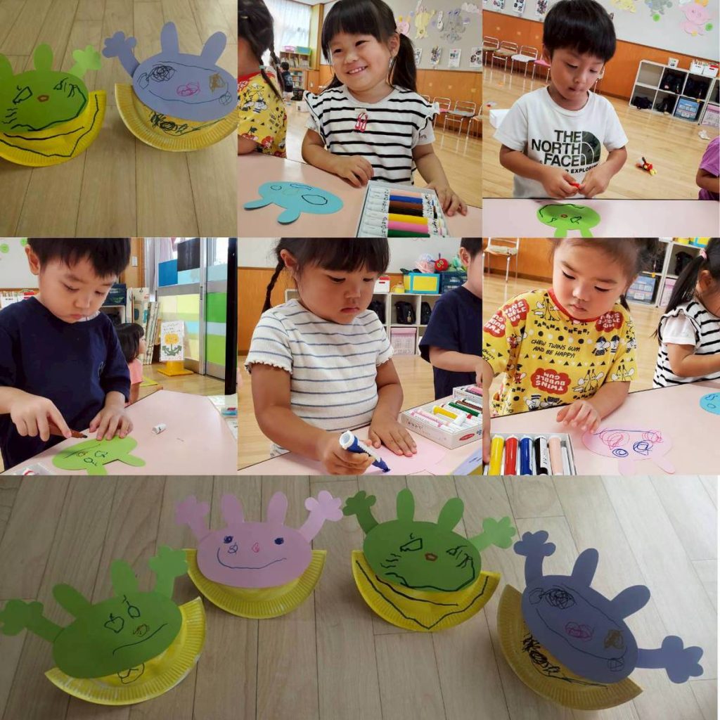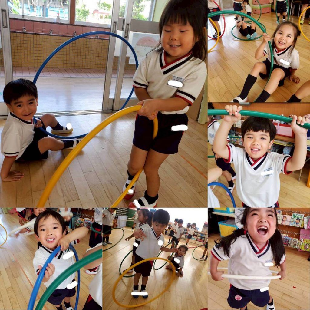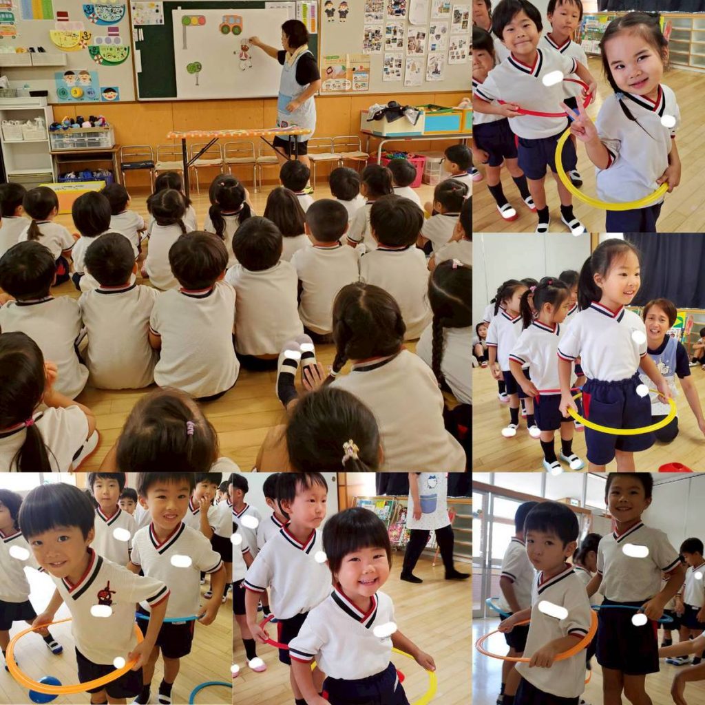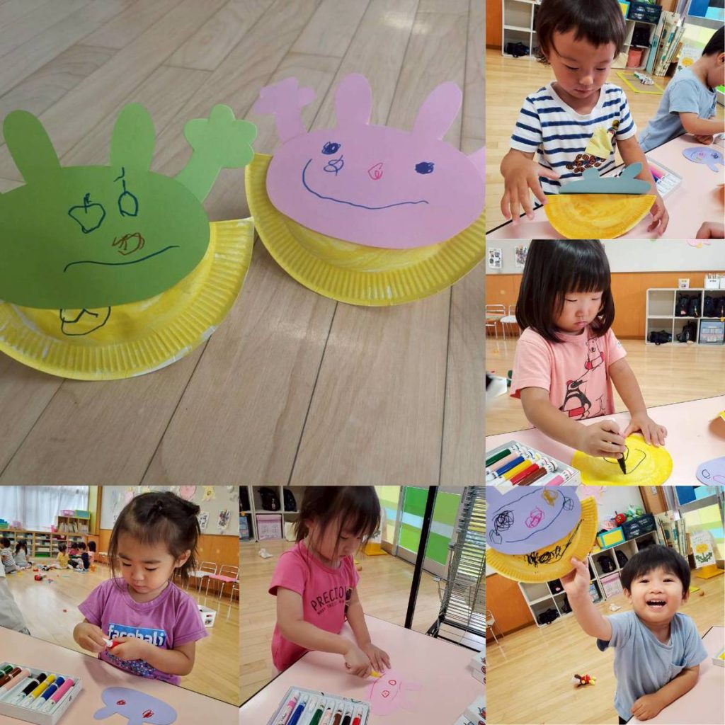 運動会練習の合間に、制作やリング遊び・縦割り保育(年少と年長)などなど楽しんでいます。
