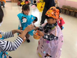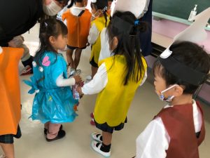 最後には、可愛いお化けちゃんが登場です!!(赤組のお友だち?)ひよこ広場のお友だちにお菓子(本物?)のプレゼントです!!