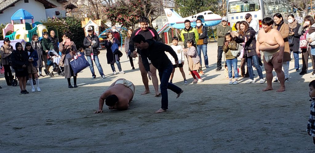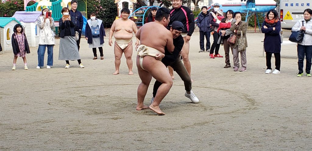 九州情報大学相撲部のお兄さんたちとお相撲したり、