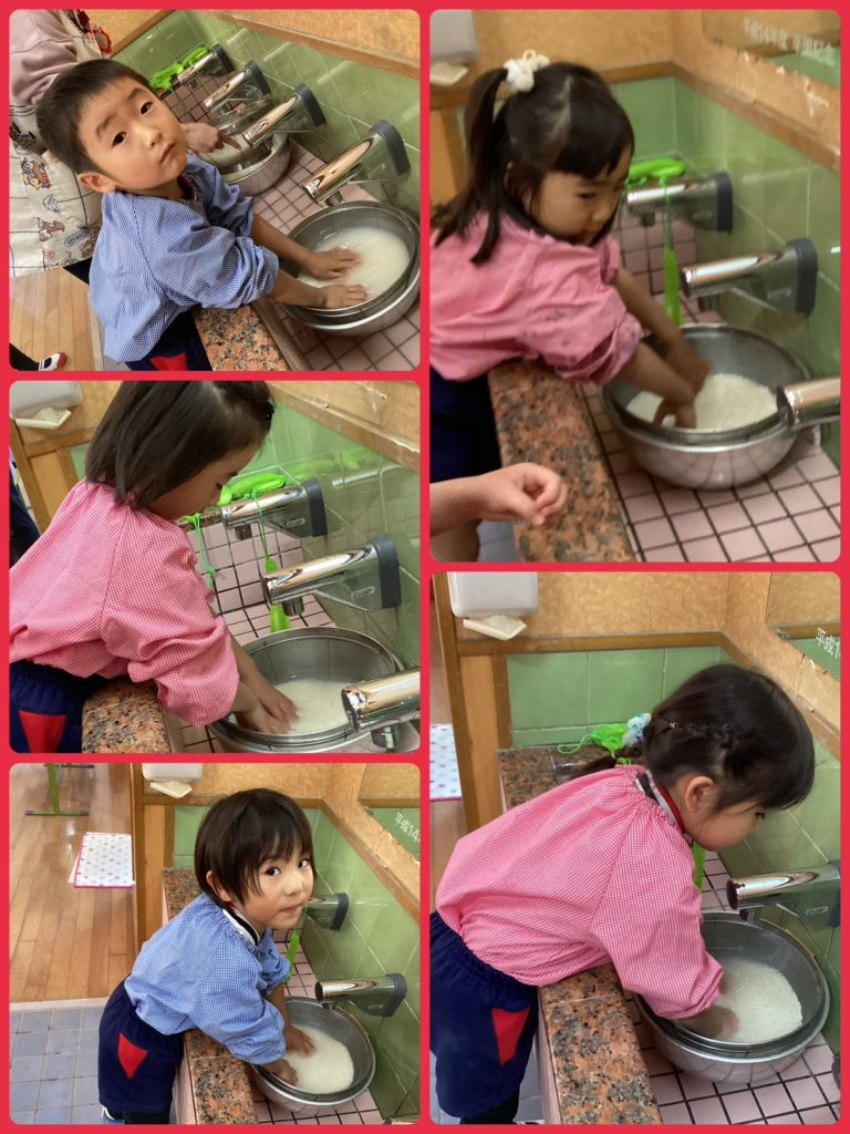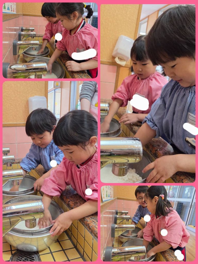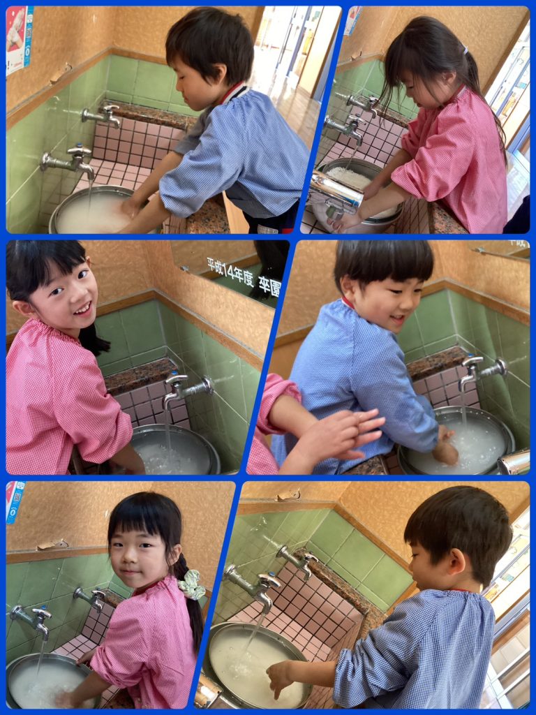 普段お家ですることがない子もいましたが、冷たい水で一生懸命お米とぎをしていました。