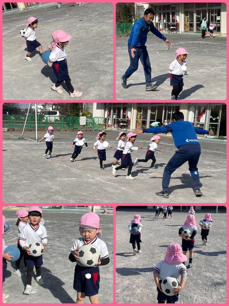 ボールを背中に乗せて鬼ごっこです♪