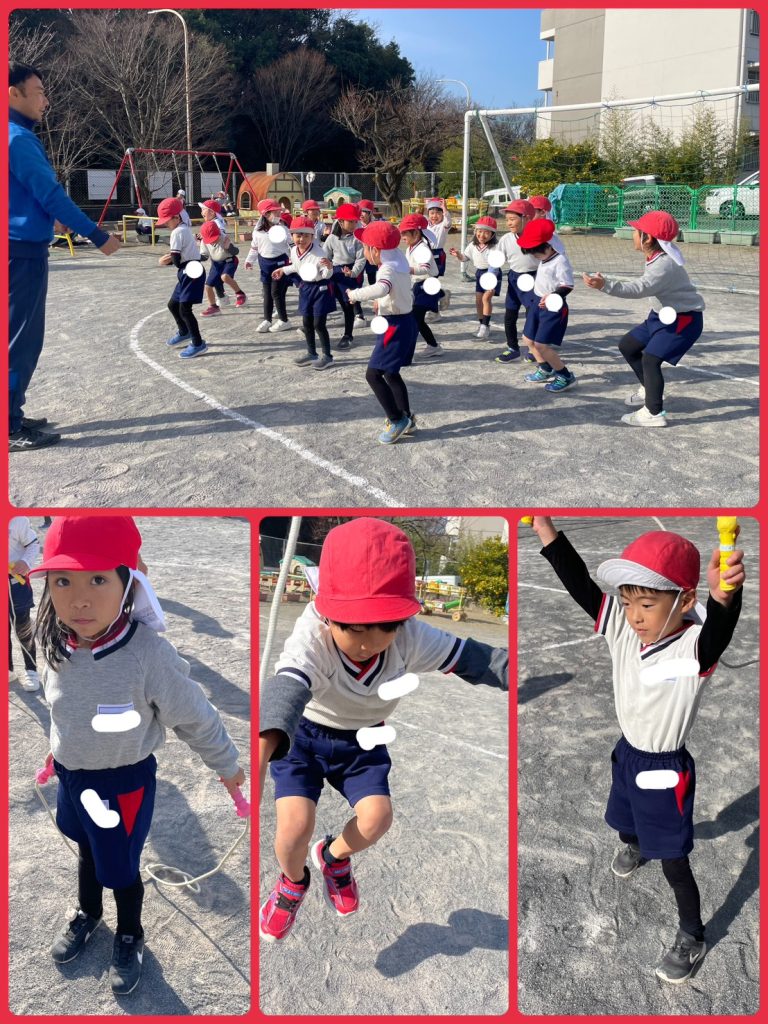 縄跳びは前回りをしています。上手に飛べていました。