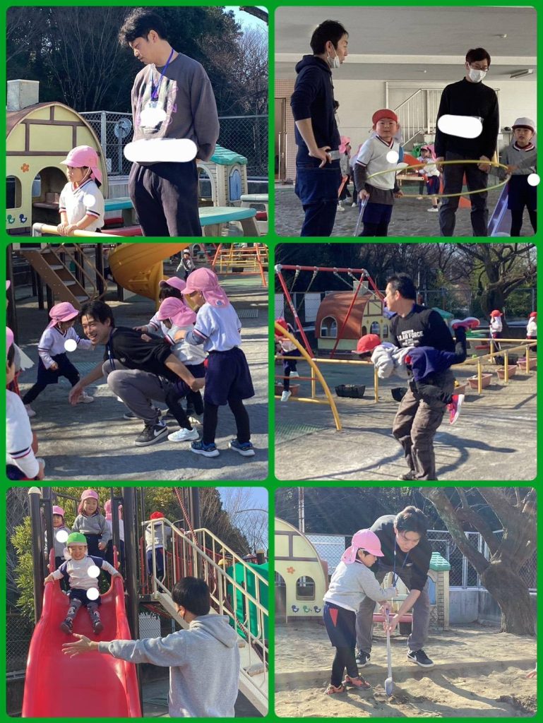 午後はお父さん先生になってくれて、園庭で遊んだり、帰りの会では紙芝居を読んでくれたりしてくれました。子どもたちは一日大喜びでした。