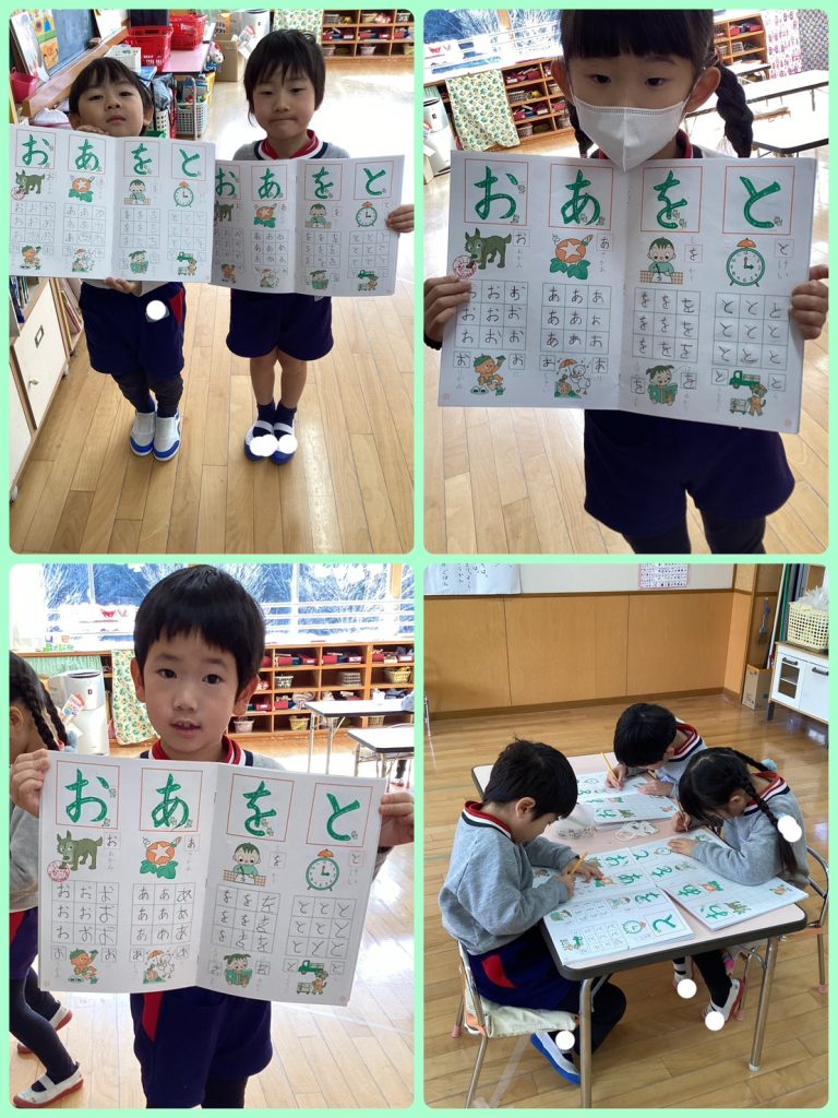 あいうえおを書きました。もう少しで小学生!!早いですね。。。