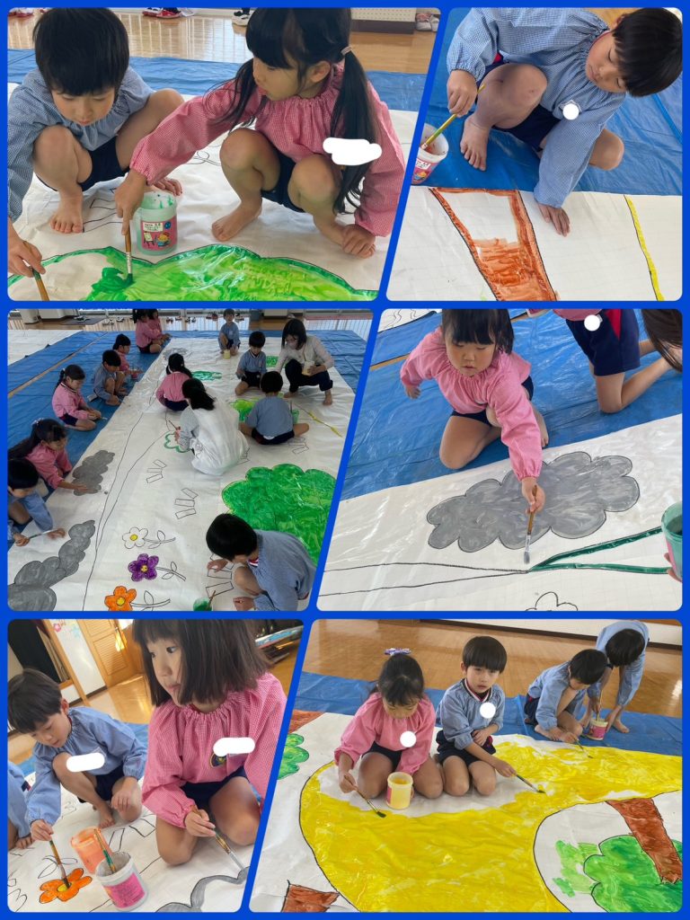 お遊戯会の背景色塗りをしました。細かいところも塗ってくれました\(^o^)/