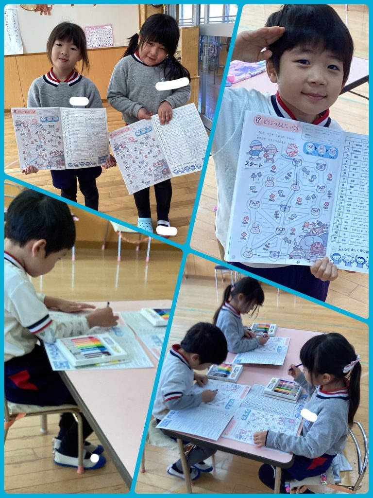 がくしゅうあそびをしました。今日で最後のページです。子どもたちはさいごのページと知り、達成感を味わっていました。