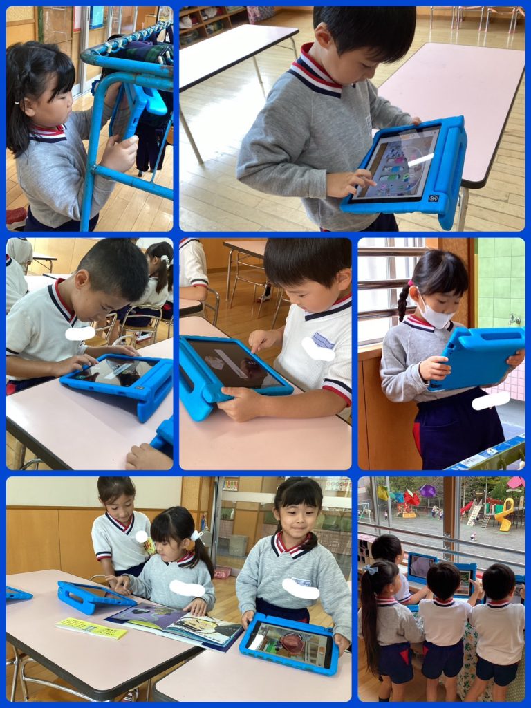 みんな、クラスの壁面や絵本のキャラクターなどに音や声を当てて楽しんでいました。中には、トイレの便器を撮影してオリジナルのキャラクターに見立てて遊ぶ子もいました。