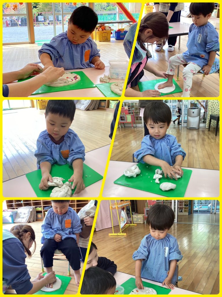 パールクレイ(紙粘土)で遊んだ後は作品作りです!!