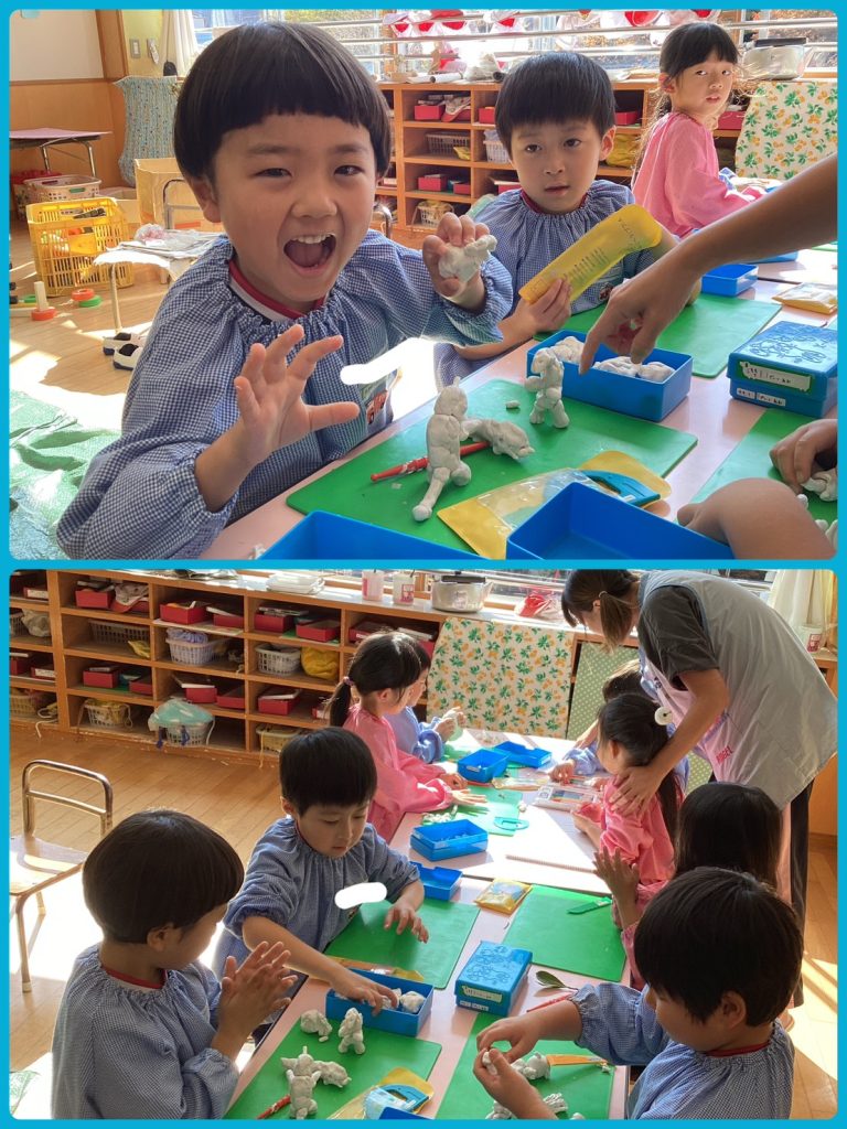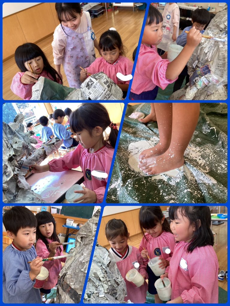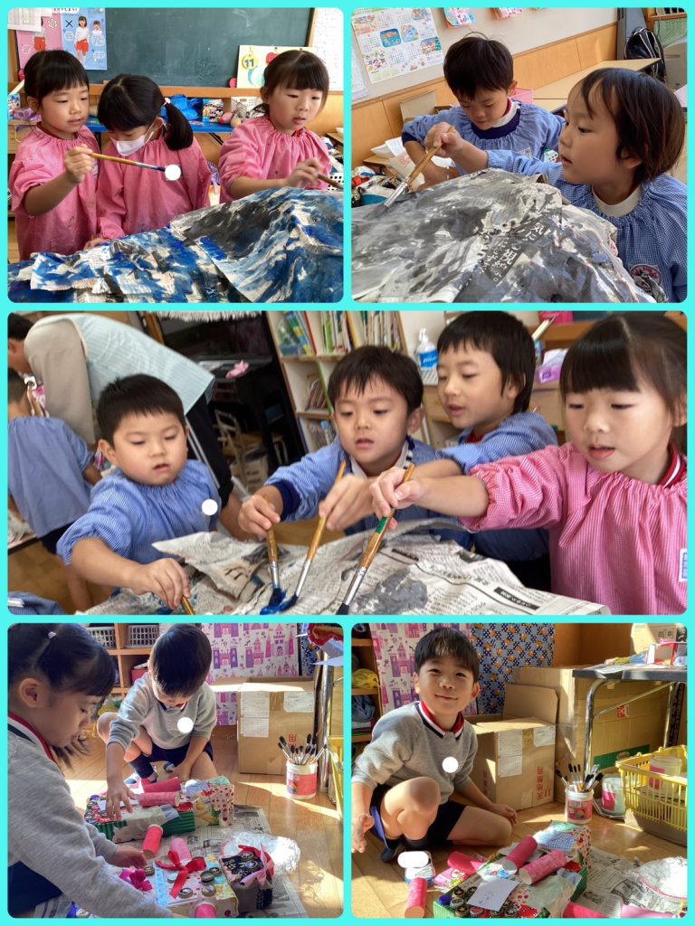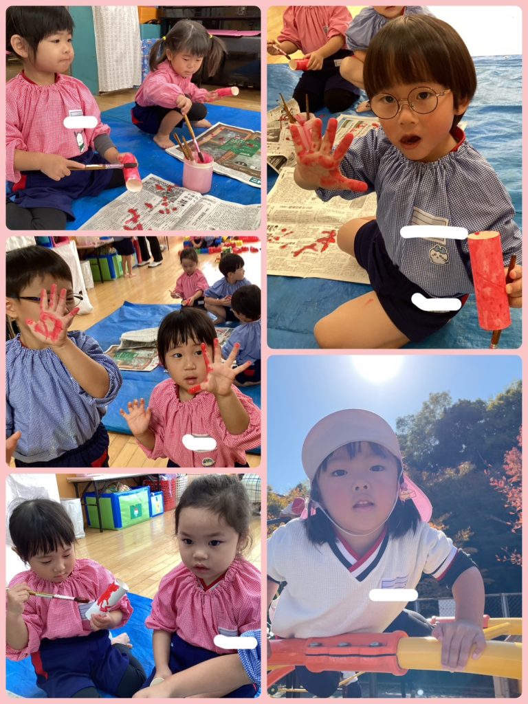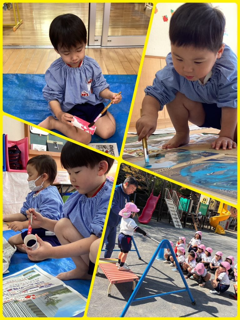 幼稚園では、絵の具塗や体育教室をしました(*^^*)