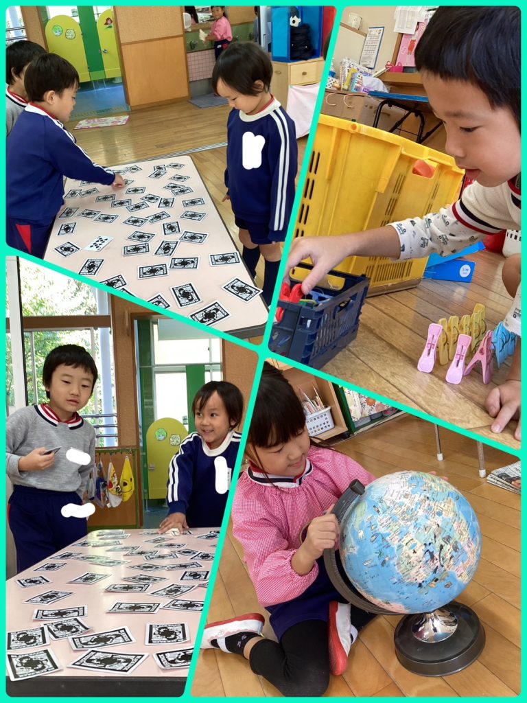 自由遊びの時間です。トランプをしたり地球儀をみたり、、青組さんらしい遊びですね。