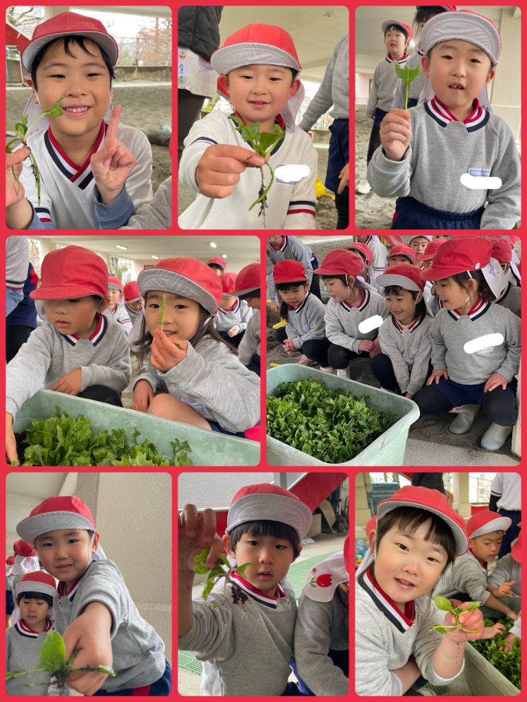赤組(年中)さんにほうれん草を抜いてもらい、お昼に味噌汁を飲みました(*´ω`*)