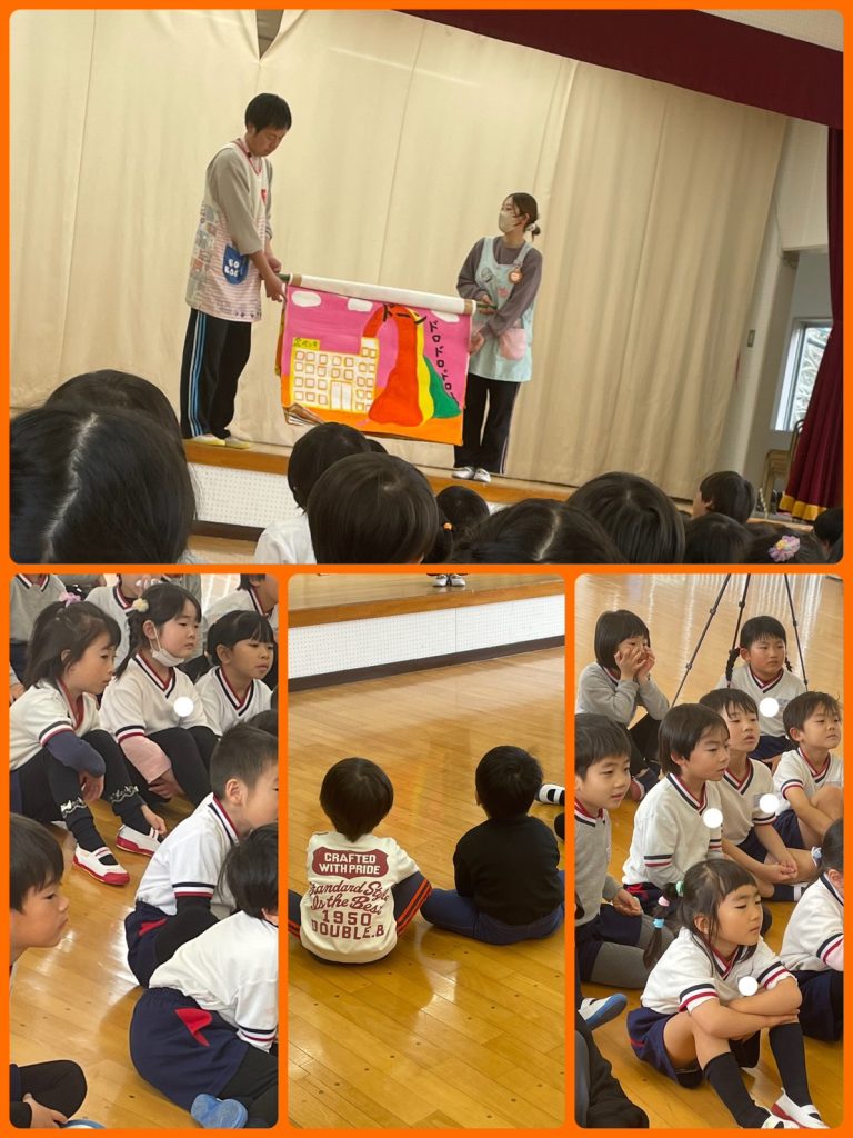 先生からの出し物は「みみずのおっさん」という大型紙芝居を見ました\(^o^)/