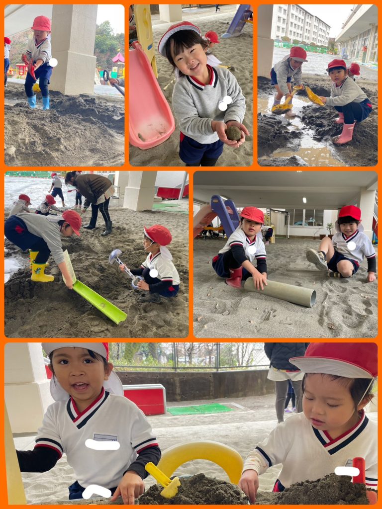 雨で園庭では遊べませんが、ホールの下でたくさん遊べました\(^o^)/