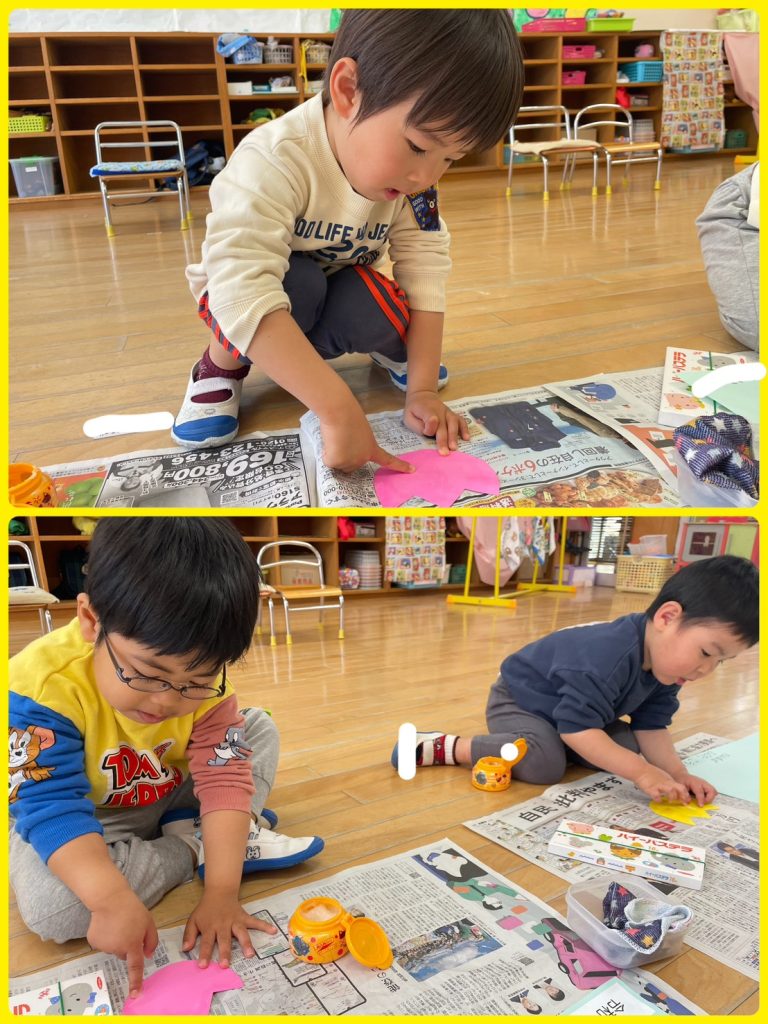 製作中の桃組(年少)たんぽぽ組(満3)