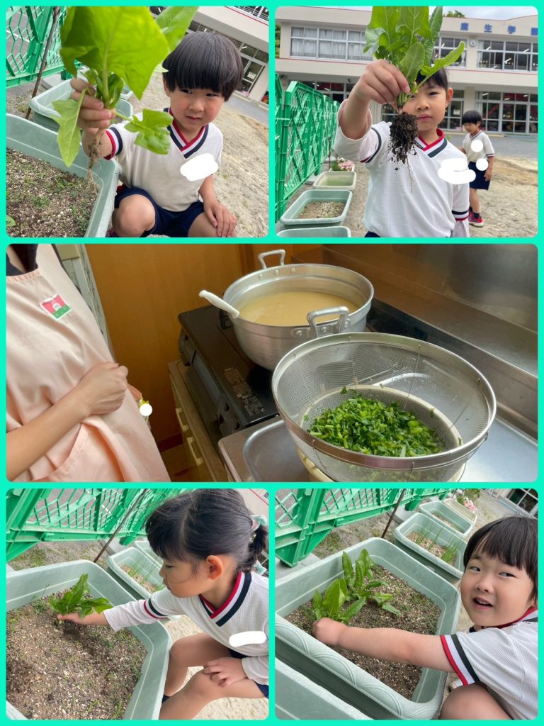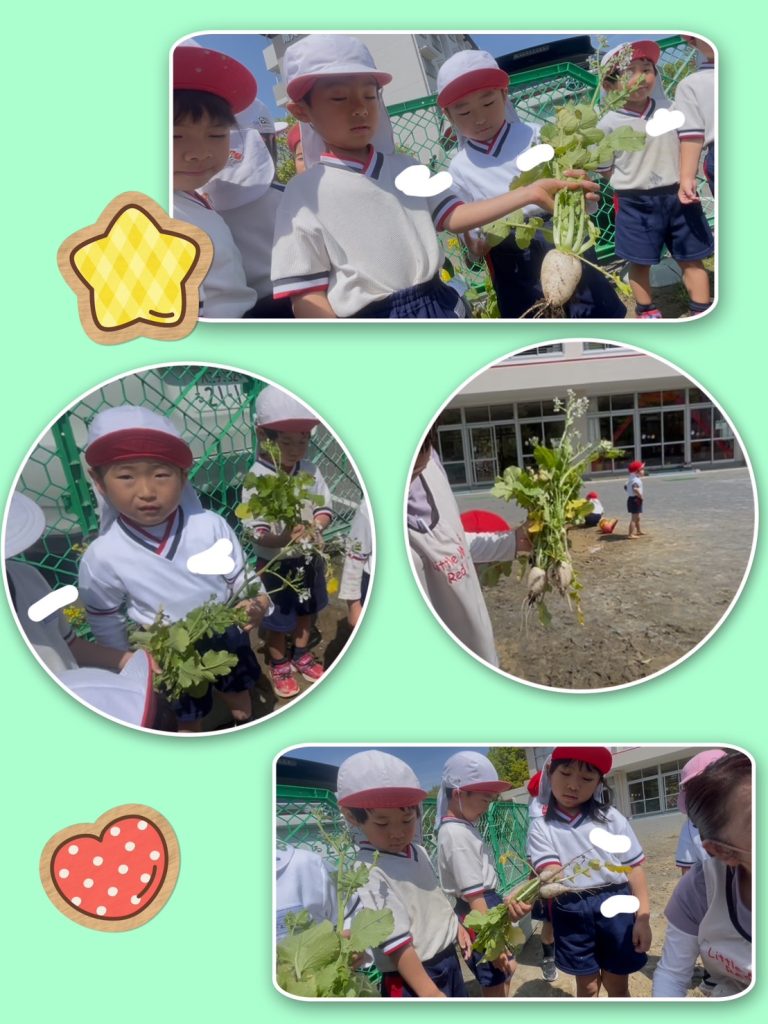 子どもたちにほうれん草と大根を抜いてもらいました♪