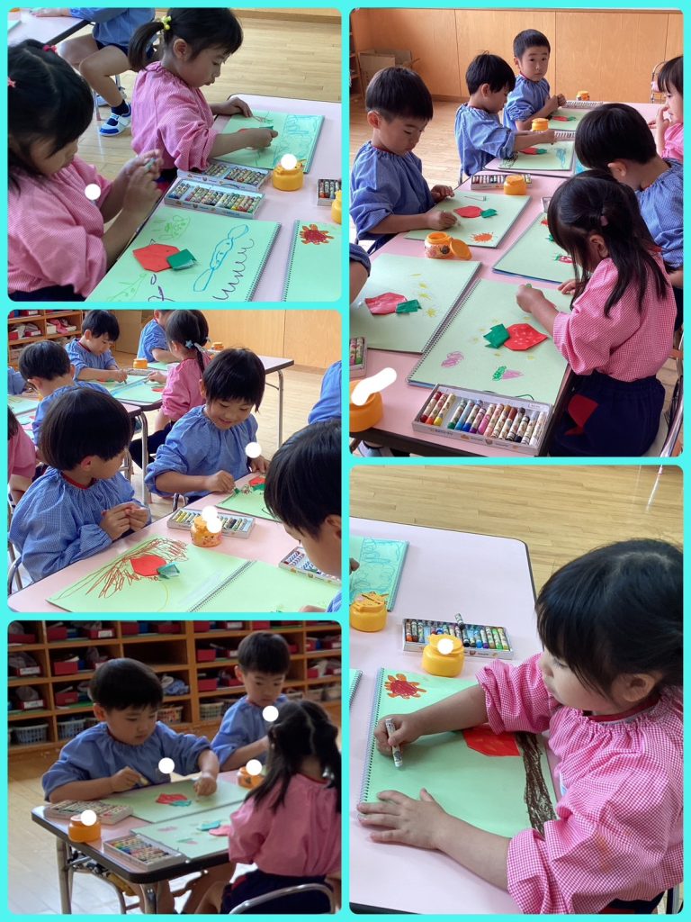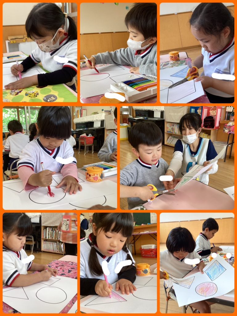 初めてのハサミ練習◯△▢を切りました。真剣な子どもたちでした。