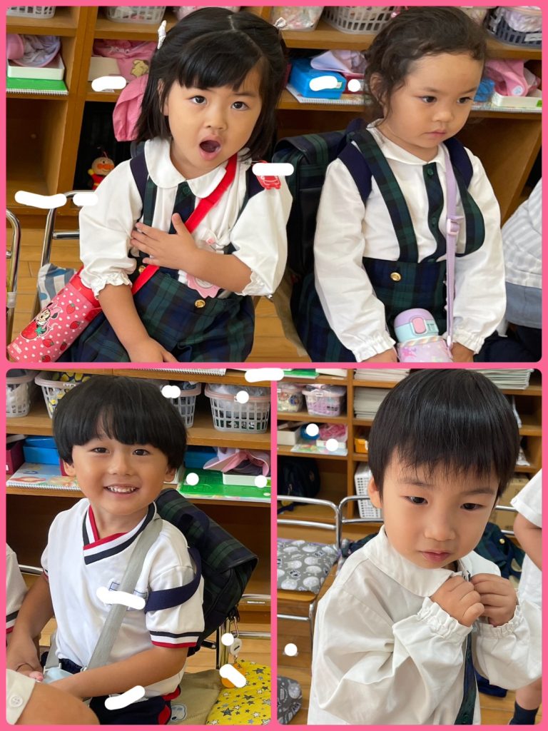 二学期から着替えが始まった桃組さん。着替え終わってかっこよく待っています\(^o^)/