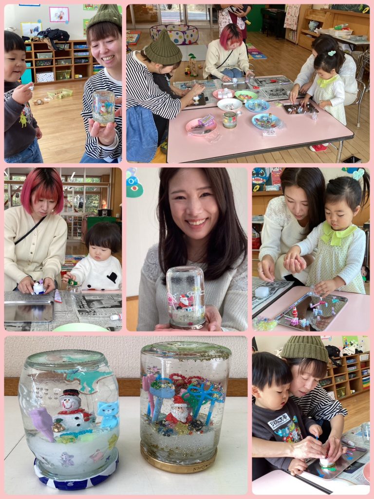 今日はスノードームを作りました。お休みのお友達が多く残念でしたがとても可愛いスノードームが完成しました。