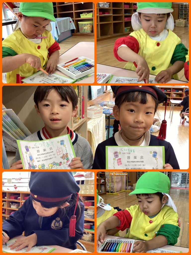 音楽会プログラムの色塗りをしています。