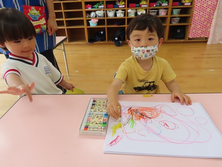 今回はクレヨンの使き方について練習しました。