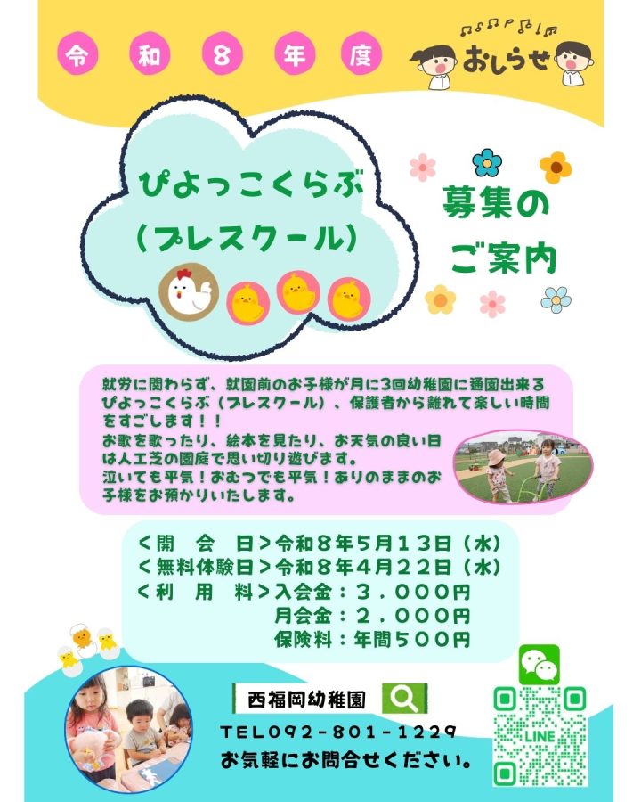 🌼令和8年度ぴよっこくらぶ(プレスクール)募集のお知らせ🌼