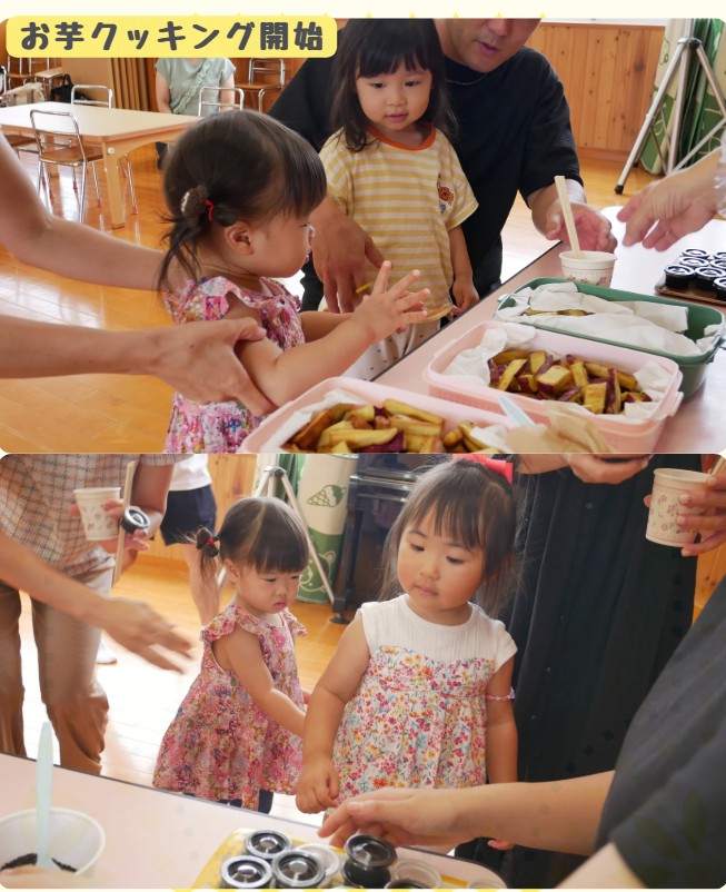 クッキングでは甘いみつやごまをかけて、おいしいお芋のデザートができあがり😋