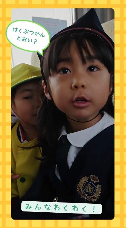 出発前からワクワクが止まりません。「はくぶつかんとおい?」「#$%&%$…!」と、言葉にならないほどの期待でいっぱい。