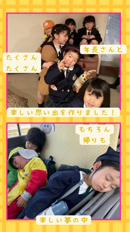帰り道は、夢の中まで遠足の続き。みんなですごす時間はあと少し。すごした毎日は、きっとずっとみんなの宝物ですね。