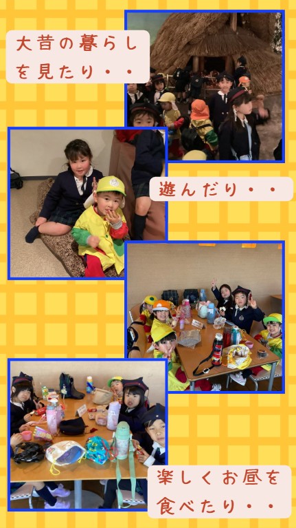 動く恐竜におっかなびっくりしたり、大昔の暮らしをのぞいたり、遊んだり、おいしいお昼を食べたり。 年長さんと一緒に、たくさんたくさん楽しい思い出をつくりました。