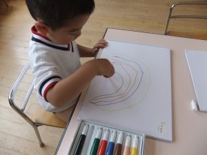 2019年07月10日 / 最終更新日時 : 2019年07月10日 西福岡幼稚園 ブログ お部屋での様子 梅雨になり雨が降る日が多くなってきました。 たんぽぽ組さんではマーカーあそびを行いました。 雨が降った後にできるきれいな虹描けるかな…? いろんな色を使ってとっても上手に描くことができました☆ お部屋でもとっても楽しく過ごしています♪
