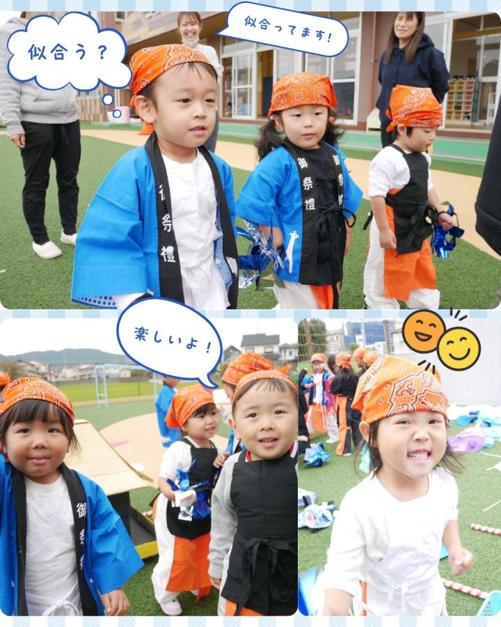 フェスティバルの衣装を着てみた子どもたちからは、「似合う?」、先生、「似合ってます!」と笑顔のやりとり😊✨