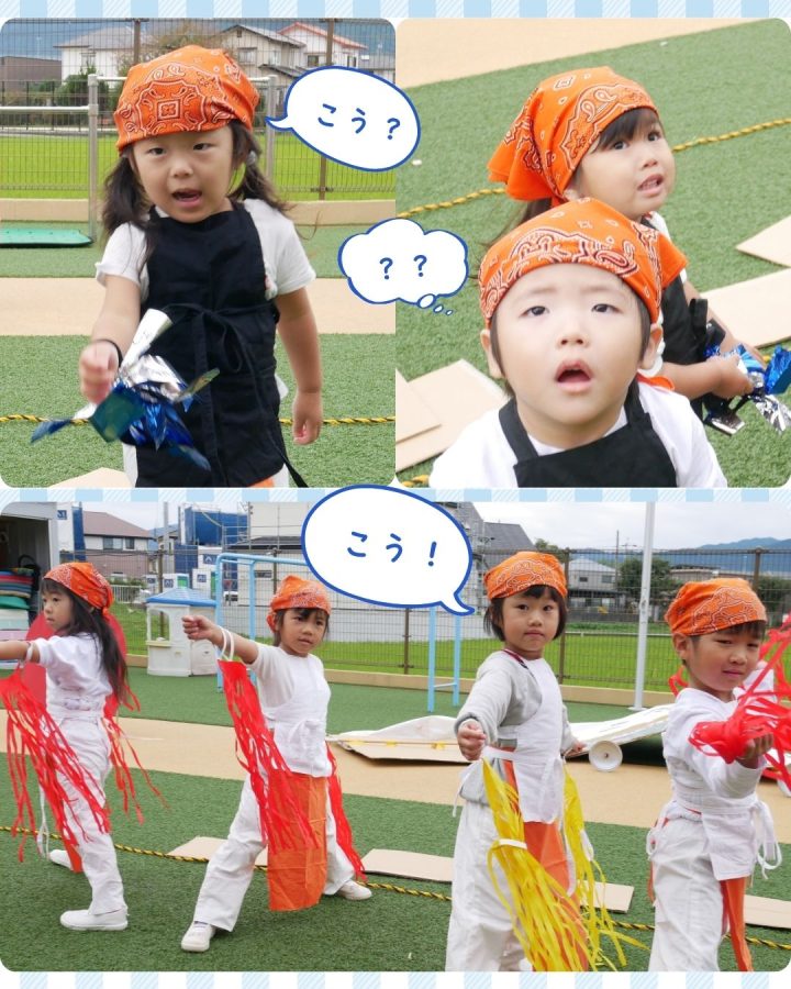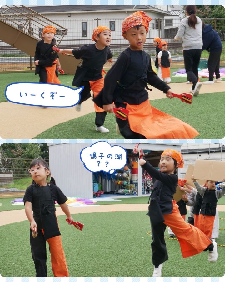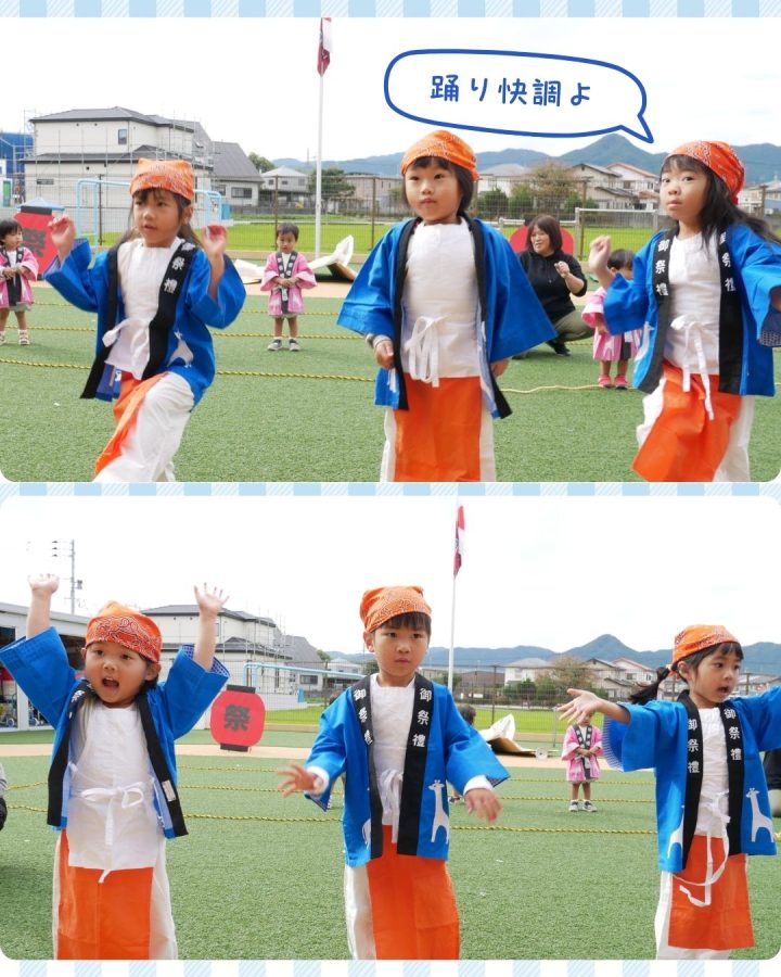 年中さん踊り快調🕺💃、年長さんは「いーくぞー!」と気合十分💪 駆け足で集合し、鳴子の舞を元気に披露!