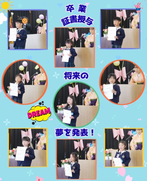 卒業証書授与では、将来の夢を元気いっぱいに発表。