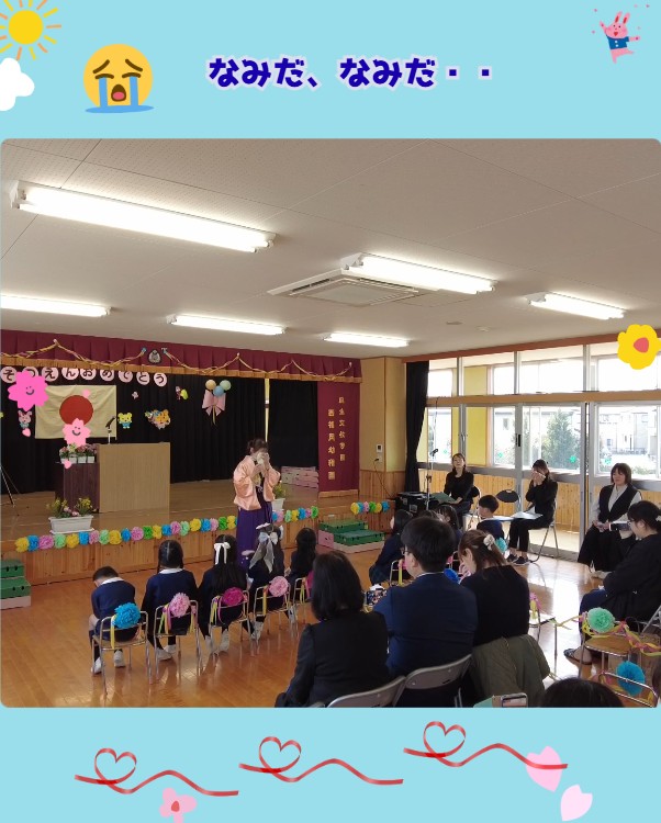 園長先生から一人ひとりへ贈られる言葉に、思い出がよみがえり、涙、涙…。