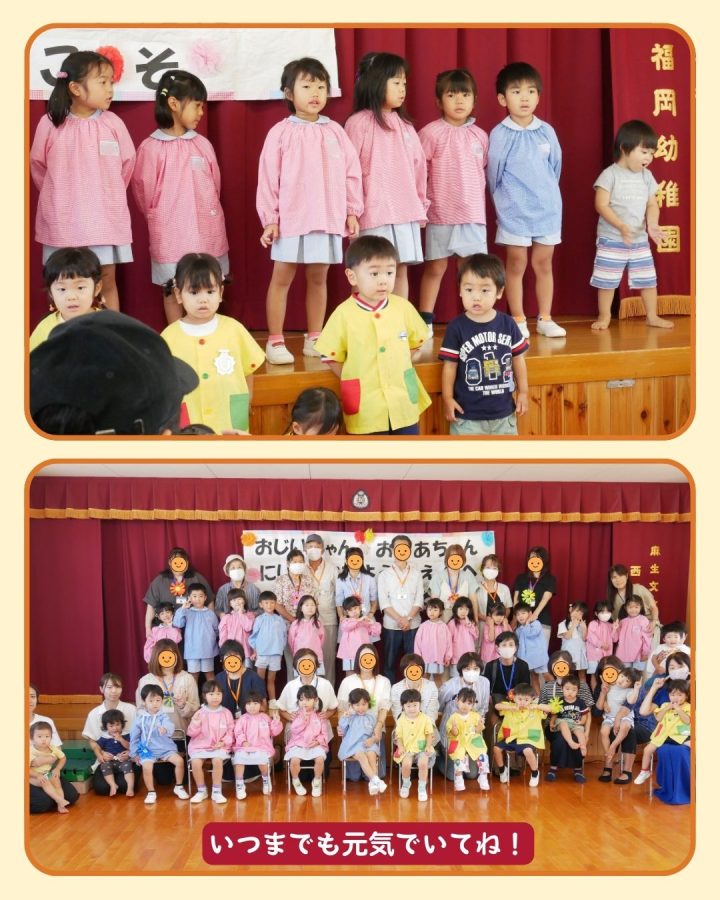 おじいちゃん・おばあちゃんと一緒に制作を楽しんだり、園児たちが元気いっぱいの体操や歌を披露🎶