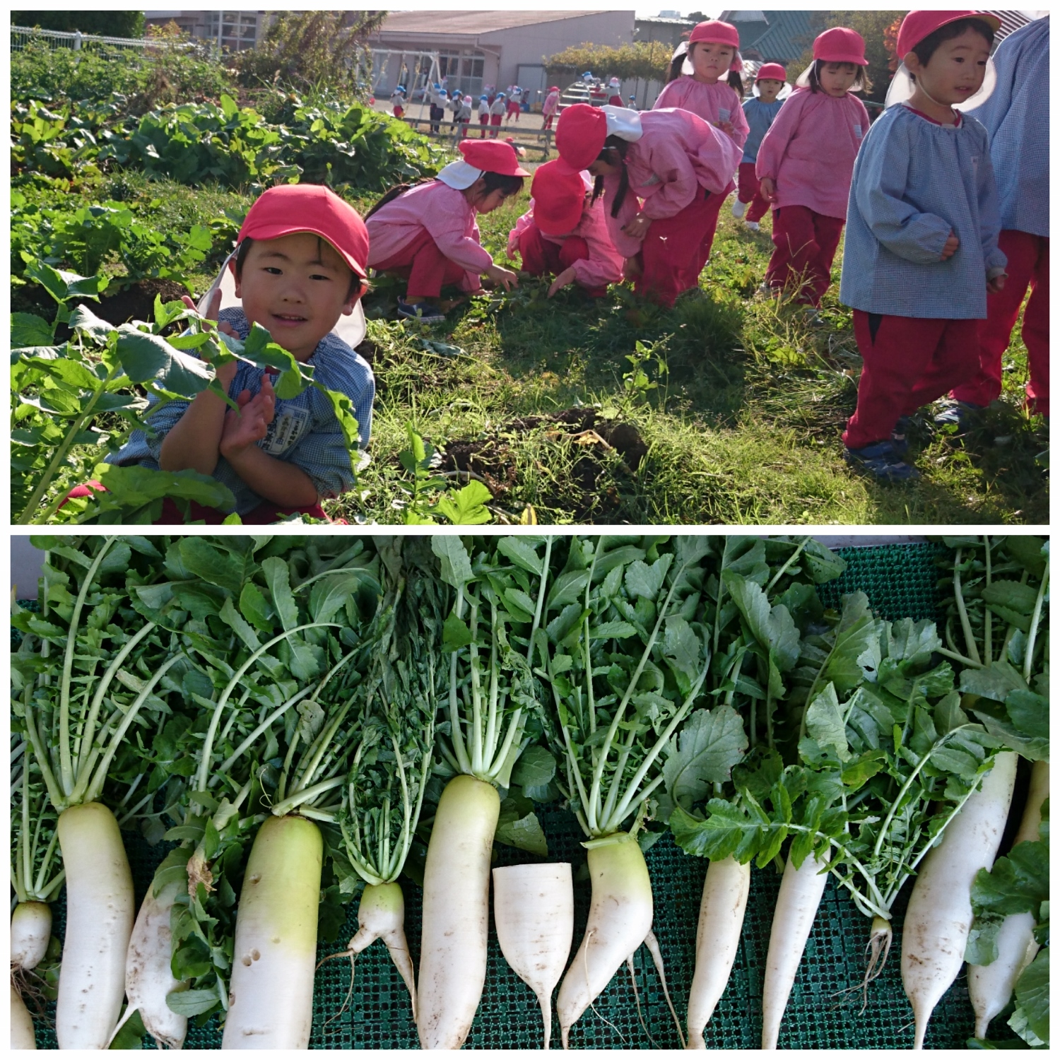赤組だいこん堀 ひよこ組すいとん作り 園庭の遊び