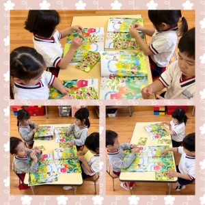 桃組さんとたんぽぽ組さんは、外で遊びました。