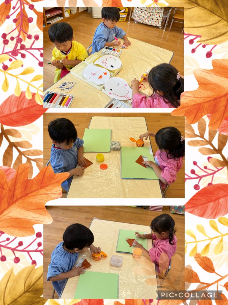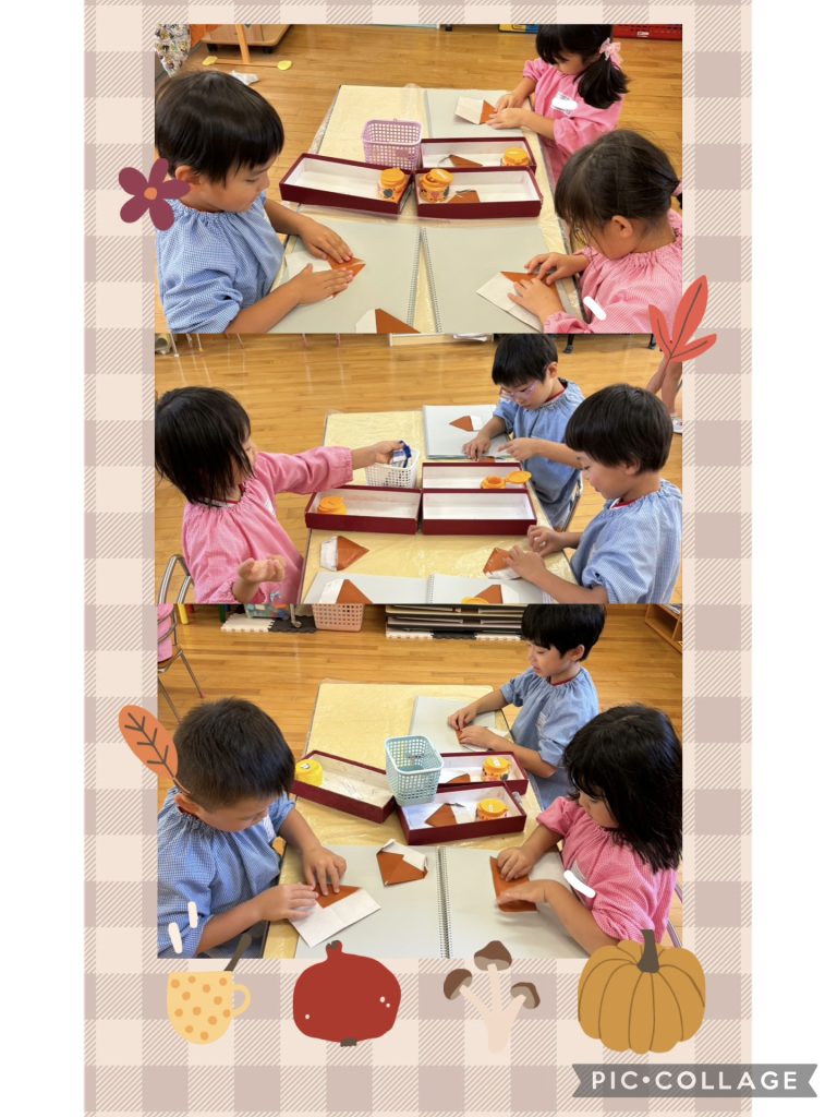 たんぽぽ・桃組さんは折り紙制作で栗を