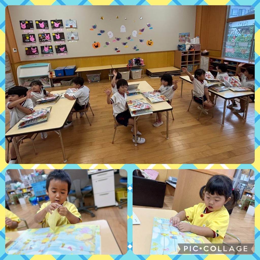 桃組さんとたんぽぽ組さんは、ひかりのくにの絵本を読みました🎵