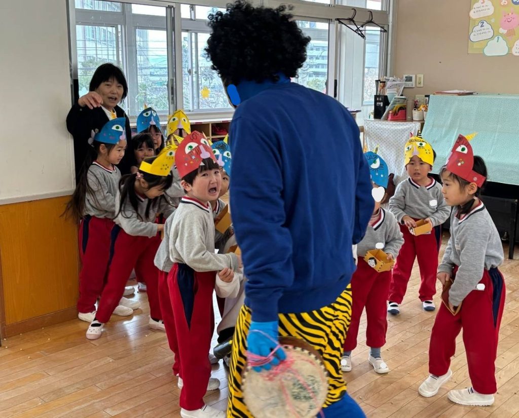 2026年02月02日 / 最終更新日時 : 2026年02月03日 さくら幼稚園 お知らせ 豆まき 2月2日(月) 炒った大豆を升に入れて鬼が来たら必死になって豆を投げつけている姿は、泣いているけれど可愛かったです。年長青組は朝から意気込みを感じ昨年とは違う子どもたちの逞しい成長が見られました。