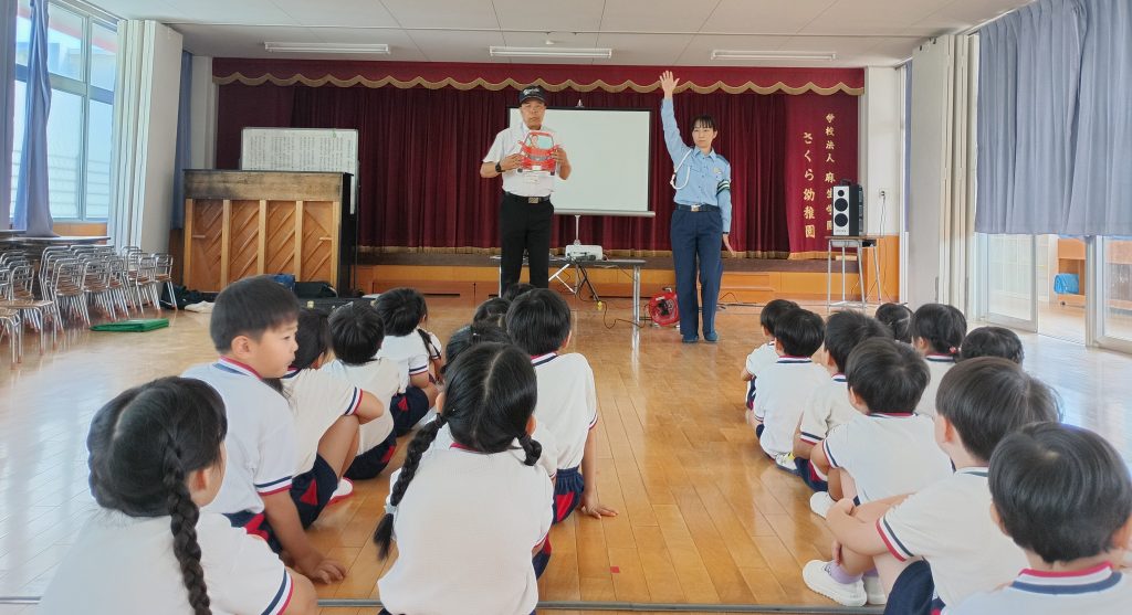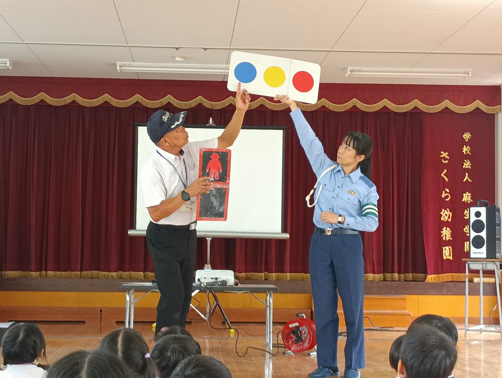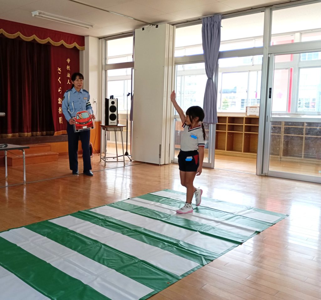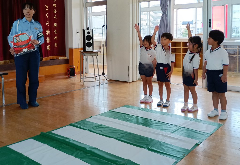 2025年09月22日 / 最終更新日時 : 2025年09月26日 さくら幼稚園 お知らせ 交通安全教室(年長・年中) 9月19日(木) 横断歩道は 青信号は、大丈夫だったら渡っていいですよ。 🚥車は黄色信号は止まりましょう。 🚥赤信号止まる! 子ども達の飛び出し事故が多いそうです。 交通安全教室では、交通事故から、大事な命を守る事を 教えていただきました。