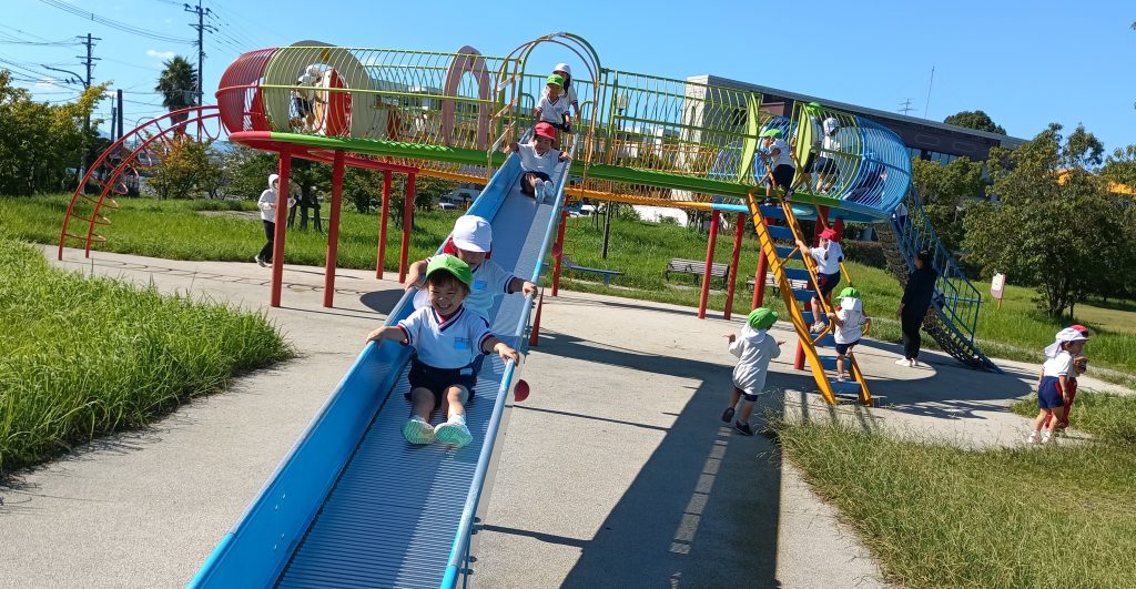 2025年10月17日 / 最終更新日時 : 2025年10月17日 さくら幼稚園 お知らせ 園外保育 10月17日(金) 満三歳児(たんぽぽ組さん)年少(桃組さん) 城浜公園でたくさん遊びました。 疲れて幼稚園に戻ってきましたが、楽しかったようです。