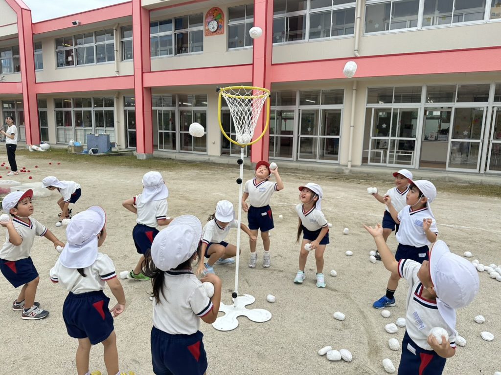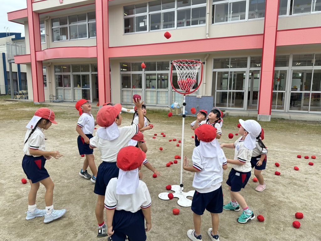 10月8日(水)年長さん・年中さんは、玉入れをしました。